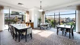 In summer, residents can have a casual get together or barbeque on our expansive balcony overlooking the full-size, professional practice bowling green. In winter, residents can enjoy a glass of wine comfortably by the open fireplace.